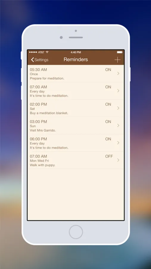 ⁃ Create unlimited reminders to remind you practicing meditation.