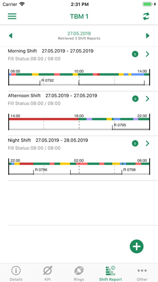 * Shift Report Data