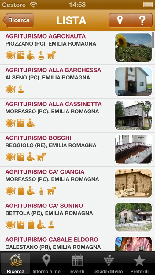 • Intorno a me, funzionalità di ricerca degli agriturismi in base alla propria posizione geografica.