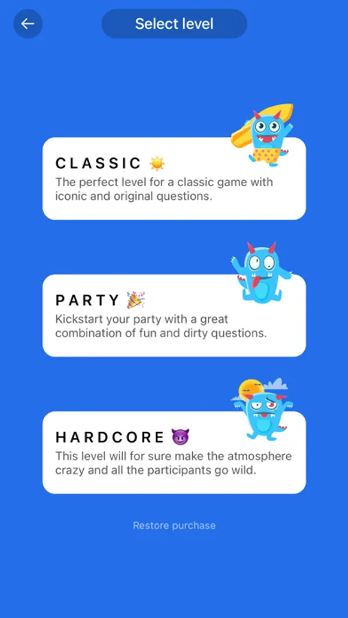 Includes 3 levels (Classic, Dirty, Hardcore) with more than +1000 questions!