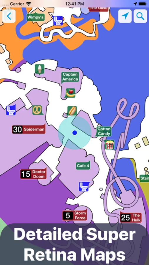 • Zoom in to see attractions, restaurants and restrooms