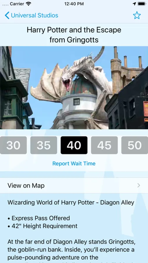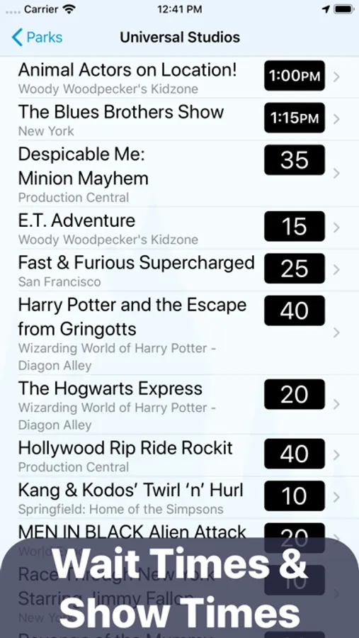 • Ride wait times viewable by park, GPS, search or your favorites