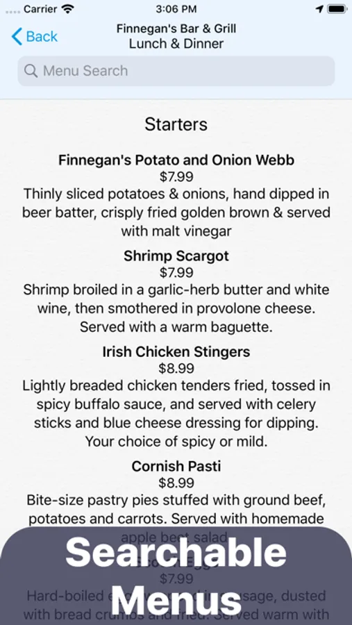 • Search within each menu