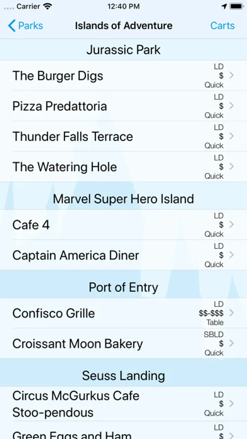 • Menus for Universal Studios. Islands of Adventure, and CityWalk restaurants, carts and stands