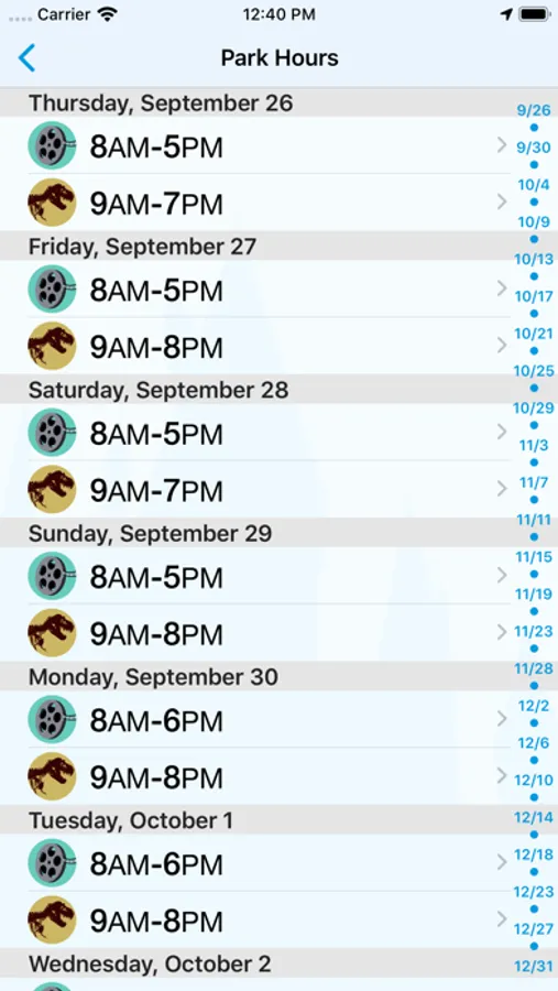 • Park operating hours for both parks