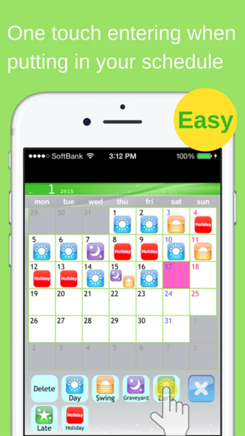 You can fill in shifts on the calendar with simple one touch controls using icons.