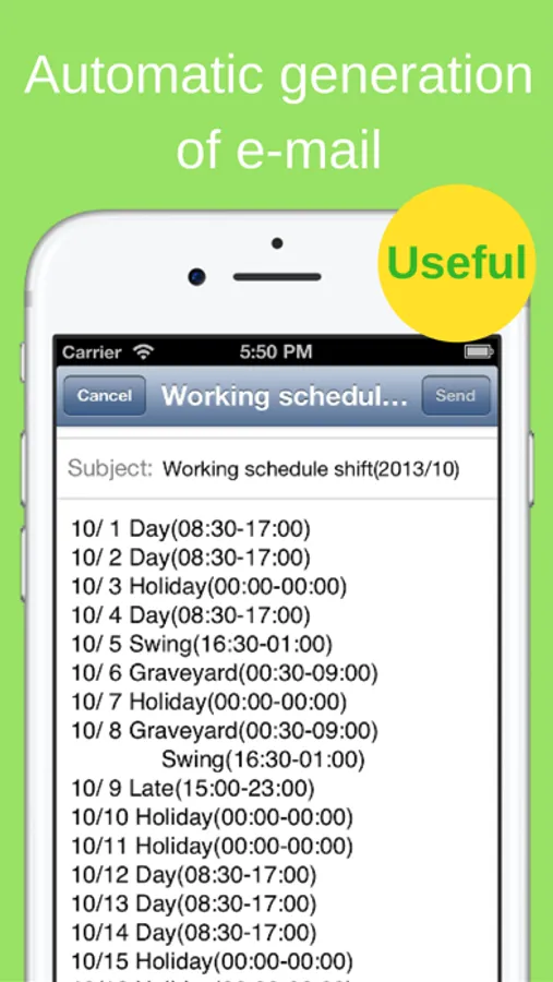 > With the Autocreate Email Function, you can automatically create an email of your shift schedule with one touch.