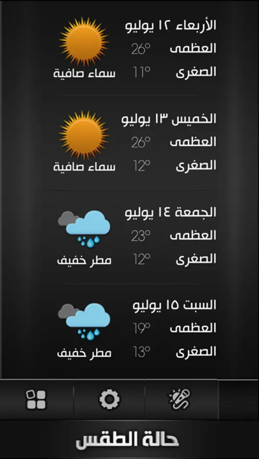 حالة الطقس هو أول تطبيق عربي باللغة العربية في متجر التطبيقات يقوم بقراءة النشرة الجوية وعرض أحوال الطقس لكل مدن العالم العربي بشكل جذاب ومميز