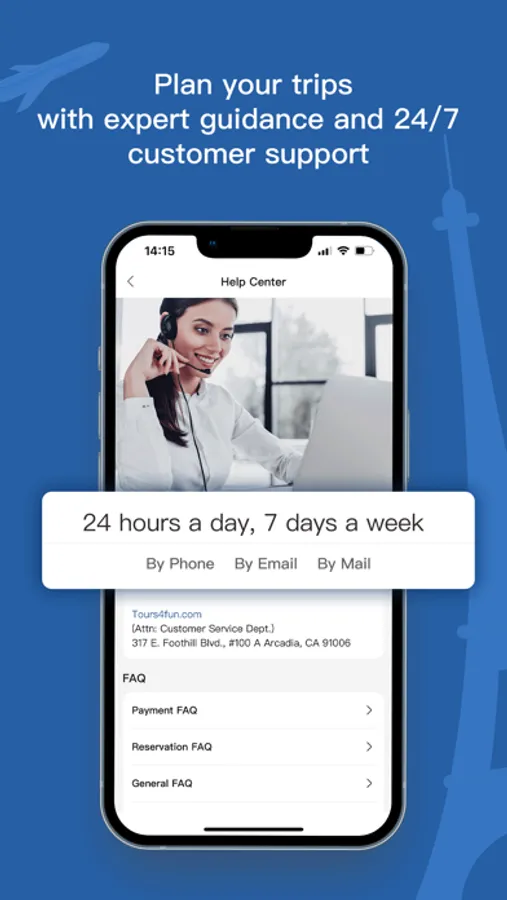 24/7 Customer Support: At Tours4Fun, we prioritize your satisfaction and peace of mind. Our dedicated customer support team is available 24/7 to assist you with any queries or concerns you may have along the way. We're here to ensure that your travel experience is nothing short of exceptional.