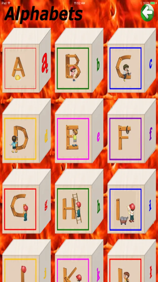 1. Kidz Learn has alphabets A-Z.The animation in the alphabets have quality photos and enables them to learn 4 words for an alphabet.