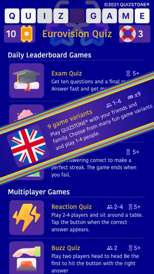 Play QUIZSTONE® with your friends and family. Choose from 8 fun game variants and play 1-4 people.