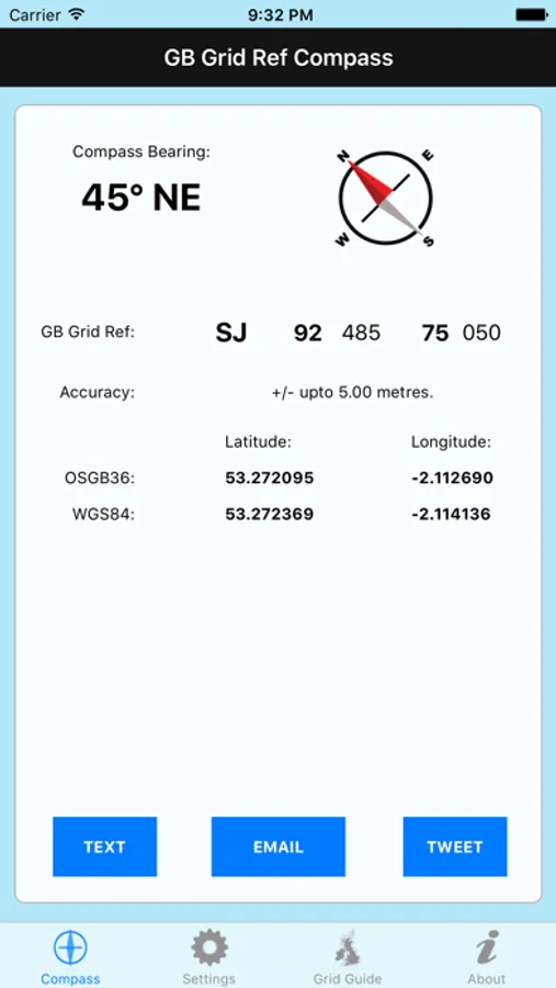 This app will give you your GB Grid Ref (Ordnance Survey / OS Grid Reference), along with a Compass Bearing and Latitude and Longitude values in both OSGB36 and WGS84 formats.