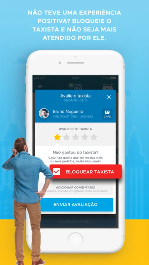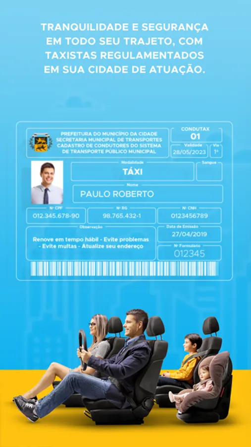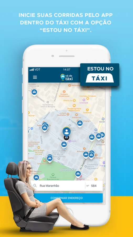 - Estou no Táxi: Abertura de corrida dentro do táxi.