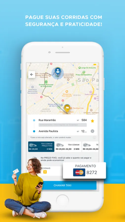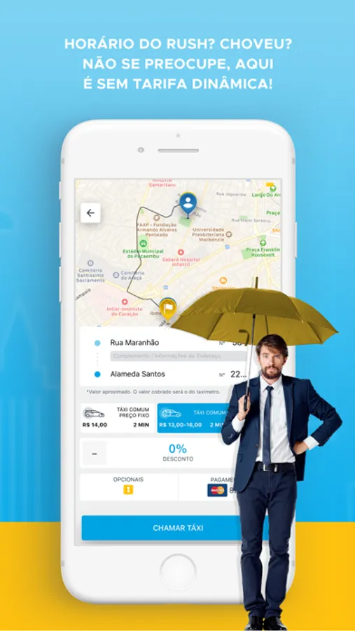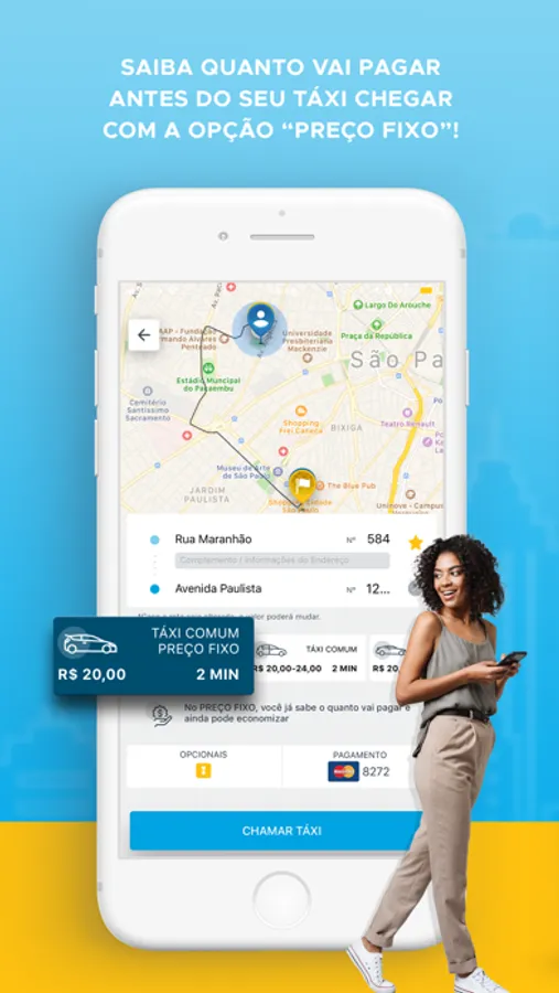 - Preço Fixo: Agora você sabe o quanto vai pagar ao chamar o seu táxi;