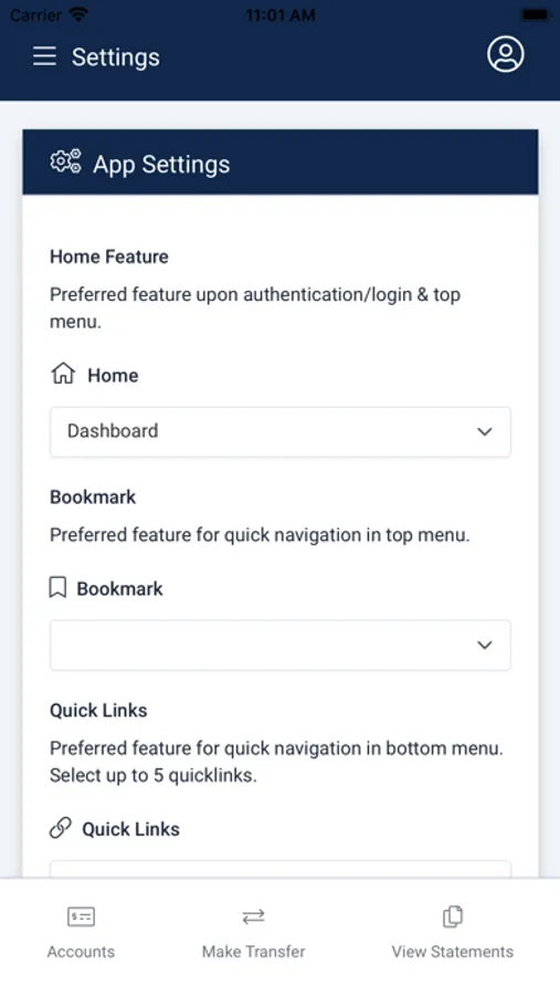 **Online customers must first setup transfer and bill pay accounts prior to using these features.