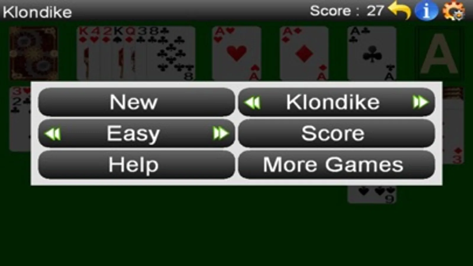 The fun of original games is preserved but some improvement are made to make it easier to play on the small factor devices. In particular, you don't have to drag individual cards - drag&drop whole column, only proper cards will move the rest will snap back. The scoring all the games is simplified to track only number of moves to solve the puzzle. If you stuck, feel free to use hints or undo - implemented by all the games. Use menu (top-tight corner) to change the game type, difficulty, check score, help or to start a new game.