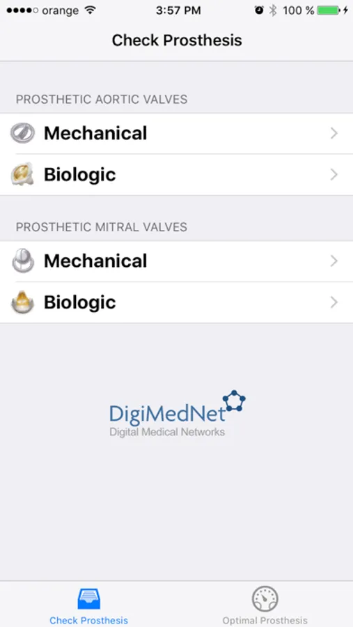 The application provides guidelines for assesing an already implanted valve (Check Prosthesis) and for choosing a valve before implantation (Optimal Prosthesis). The algorithms behind the App have been derived after an extensive research of the published materials on the aortic and mitral prosthetic valve assessment.