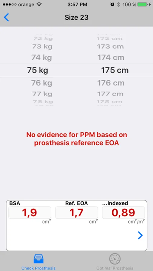 The user will be required to select a valve position (aortic/mitral) and the patient characteristics (weight/height) and Cardio Valve will instantly indicate the minimum Effective Orifice Area (EOA) in order to avoid Patient Prosthesis Mismatch (PPM).