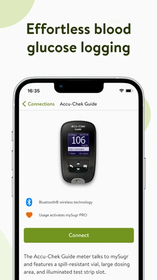 • Accu-Chek® Aviva Connect; Accu-Chek® Performa Connect; Accu-Chek® Guide (activate mySugr PRO for no charge! Please see our FAQs on the website for the latest information).
