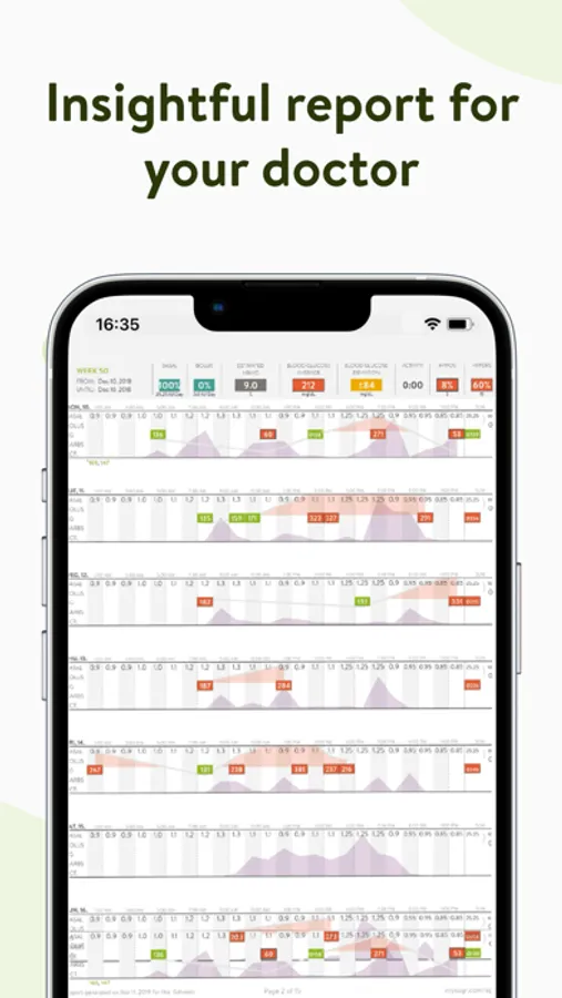 • Daily, weekly, and monthly reports, that you can share directly with your doctor.