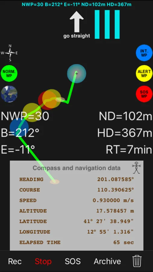 During the "Comeback" function it will be possible to start a new path by pressing the "Rec" button: the application will continue the journey from the current position.