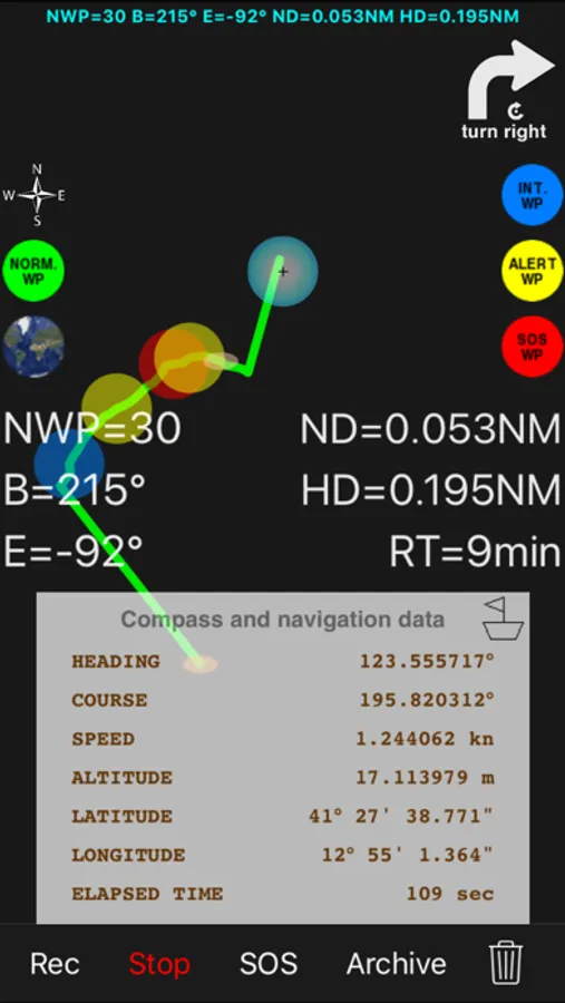 - Register your trip by pressing the "Rec" (route recording) button