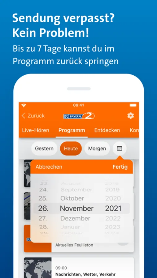Und wer kennt das nicht: Man ist kurz abgelenkt oder schaltet zu spät ein und hat ausgerechnet die spannendste Stelle verpasst... Dann heißt es oft: Suchen und abwarten, ob es dazu einen Audio-on-Demand Mitschnitt oder einen Podcast gibt. Damit ist jetzt Schluss! In der BR Radio App kann man jetzt im laufenden Programm ganz einfach zurückspringen oder bis zu 7-Tage das Medium Radio im Nachhören-Modus neu erleben.