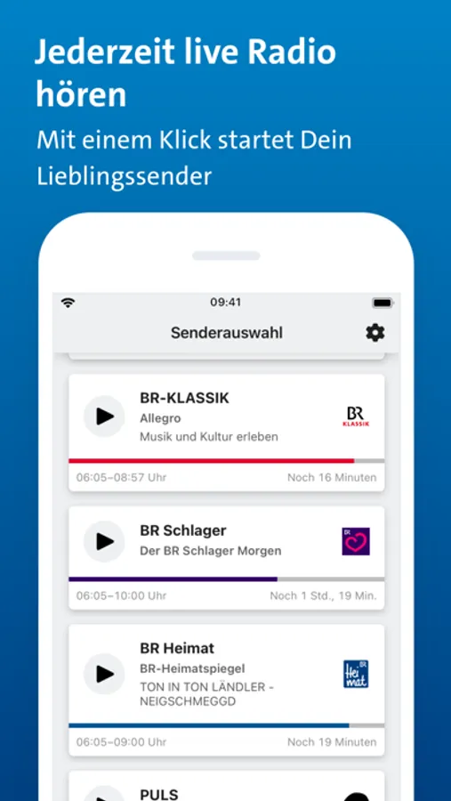 Mit der BR Radio App gibt es alle Radioprogramme des Bayerischen Rundfunks in einer App: BAYERN 1, Bayern 2, BAYERN 3, BR-KLASSIK, BR24, PULS, BR Schlager und BR Heimat.