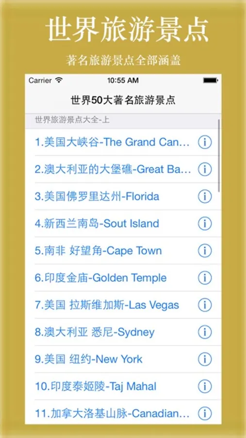 *****了解世界旅游最好的App,给力推荐《世界50大著名旅游景点》*****