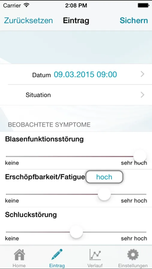 MS Tagebuch ist ein Symptom-Tagebuch für Patienten mit Multipler Sklerose. Mit der praktischen App können Sie Ihre Symptome kontinuierlich dokumentieren und so Ihren Alltag besser bewältigen lernen: MS Tagebuch erleichtert es Ihnen, Zusammenhänge zwischen täglichen Tiefs/Hochs und der jeweiligen Situation zur erkennen und Ihren Tagesablauf inkl. benötigter Pausen entsprechend darauf anzupassen. Außerdem dient das übersichtliche Dokumentieren Ihrer Symptome als wertvolle Grundlage für Ihren nächsten Arztbesuch im Hinblick auf eine eventuelle Therapieanpassung.