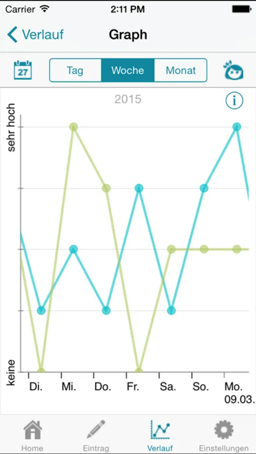 *Anzeige der Einträge als Graph oder Kalenderansicht