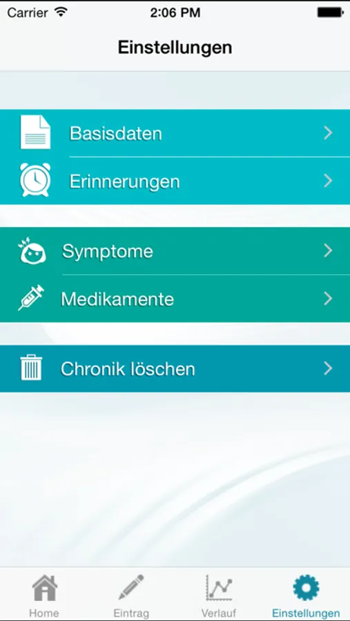 *Individuelle Tagebuch-Einrichtung (z.B. Vorauswahl Symptome und Medikation)