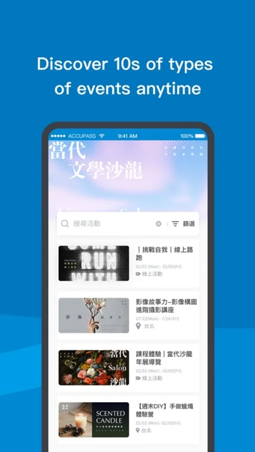 Interesting events are underway! Be part of events anytime, anywhere. Explore the unknown and everything fantastical. Easily achieve all of them with ACCUPASS.