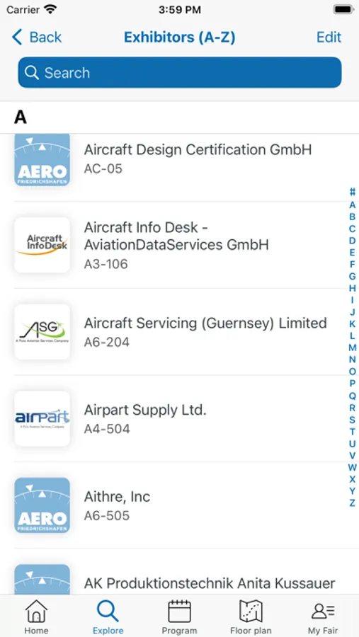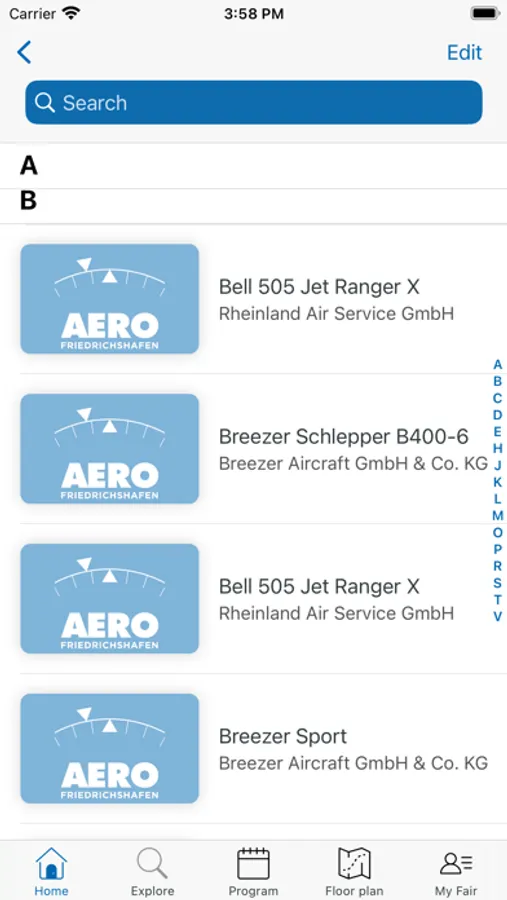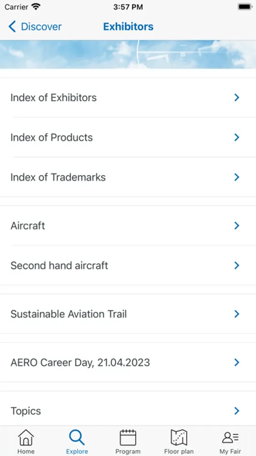 åomprehensive directory of exhibitors, products and conference program details, as well as an aircraft and used aircraft list inclusive of technical data. For the second time you can also find companies linked to sustainable aviation on our dedicated AERO sustainable aviation trail. You can use the app to create, synchronize and manage your favorites lists. Exhibitor contact details can be exported to the dedicated smartphone address book.