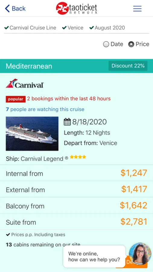 Ticketcarnival allows you to book your cruise directly. This is a new version which allows you to book your cruise automatically. All without ever leaving the application itself.