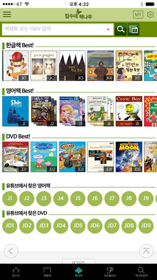 잠수네 책나무는 아이들이 볼 한글책, 영어책, DVD 선택에 도움을 드리려고 만든 컨텐츠입니다. 영어책은 J단계, 한글책은 JK단계, DVD는 JD단계로 난이도를 나눴으며, 주제에 따른 분류, 책 특성별로 원하는 책을 찾을 수 있습니다.