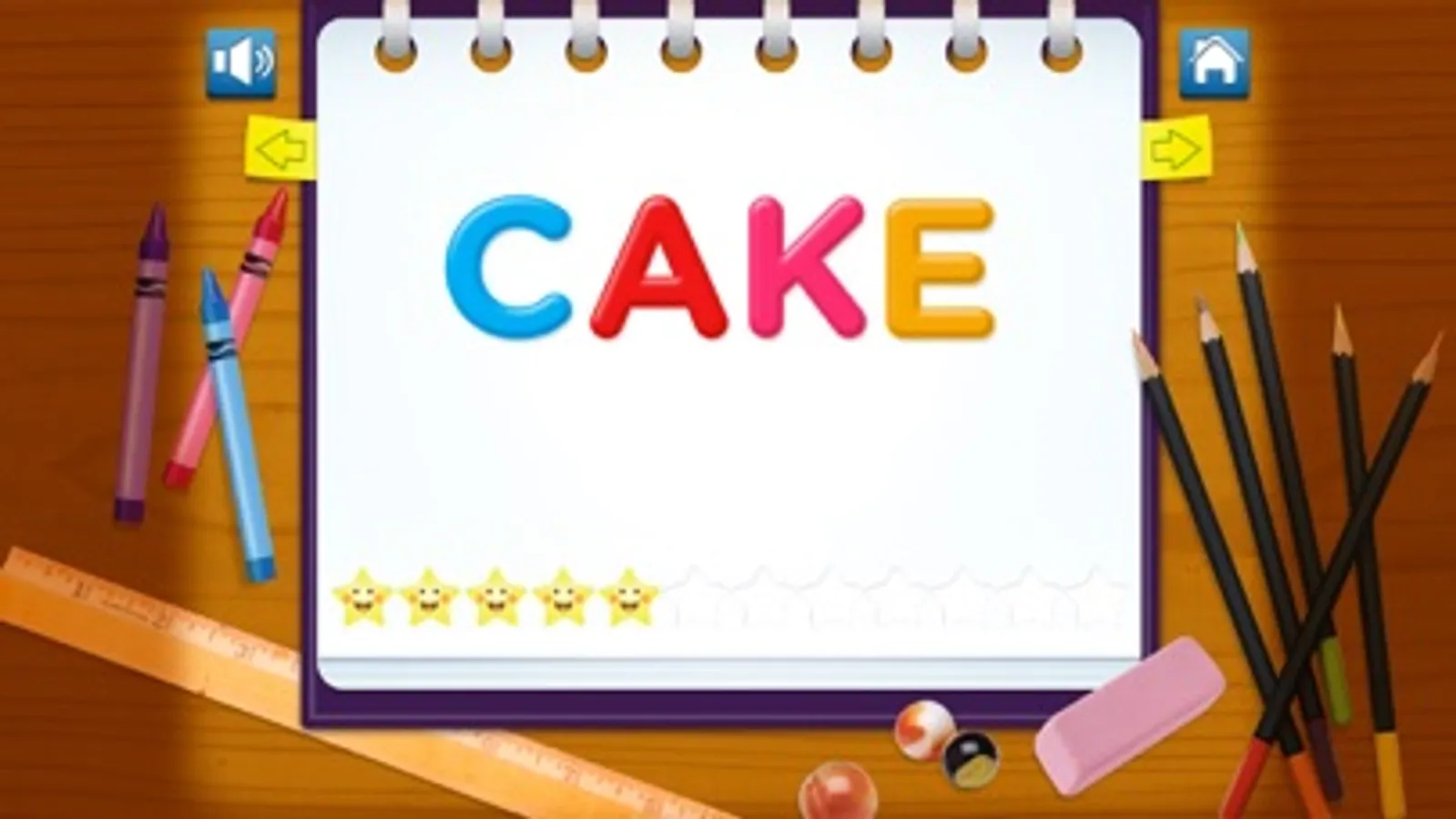 - Positive reinforcement through the use of audio and visual cues that includes earning stars for successful word matches