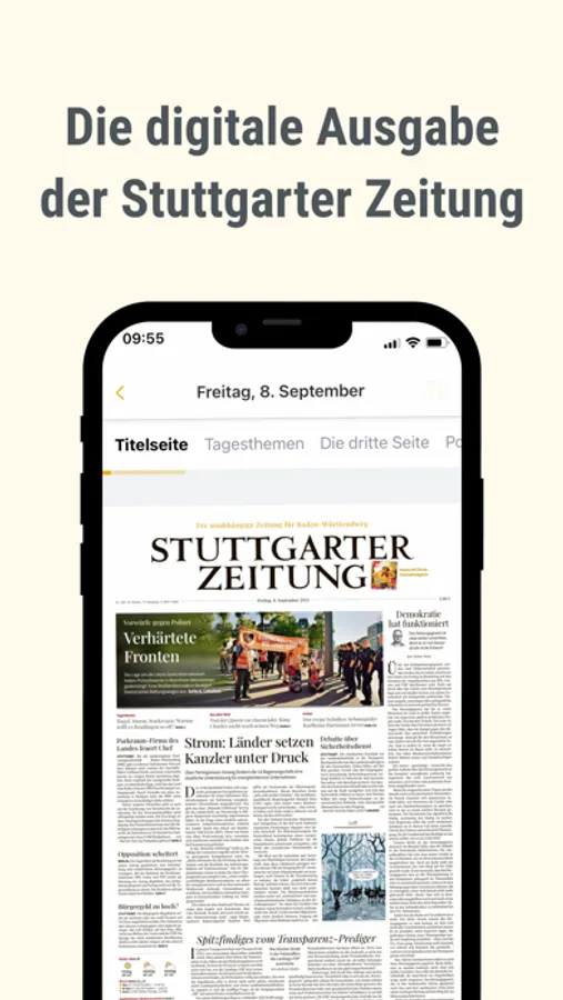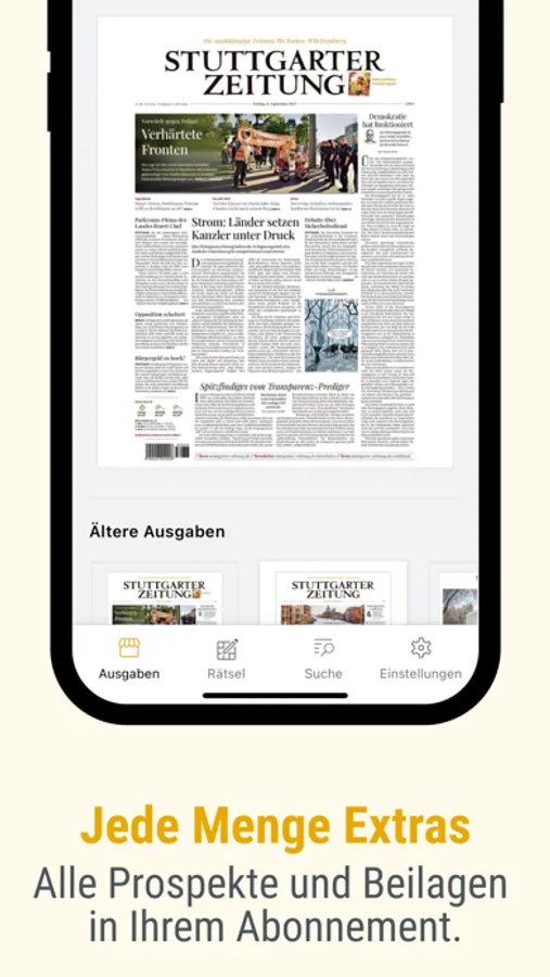 - Täglich die komplette Ausgabe der Stuttgarter Zeitung inklusive aller Lokalteile.