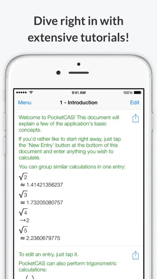 - Help: All functions are explained in the built-in reference. If you're stuck, there's plenty of tutorials as well as a manual (http://pocketcas.com/manual) to get you going. And you can always contact our support (http://pocketcas.com/support) for help!