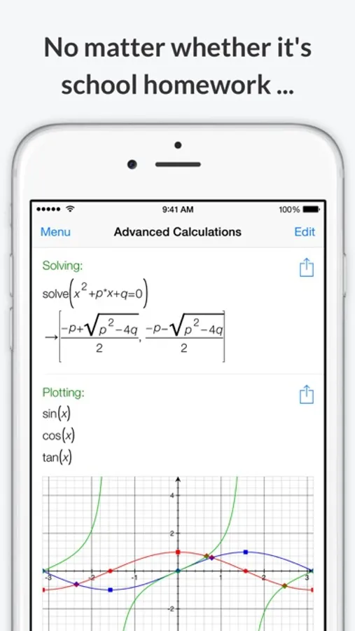 PocketCAS is the most advanced mathematics application for iPhone and iPad. It can help you with any kind of math problem, from elementary school all the way up to calculus, algebra and statistics. It can replace your old graphing calculator, help you with your homework, and assist you in any kind of calculation for university or work.