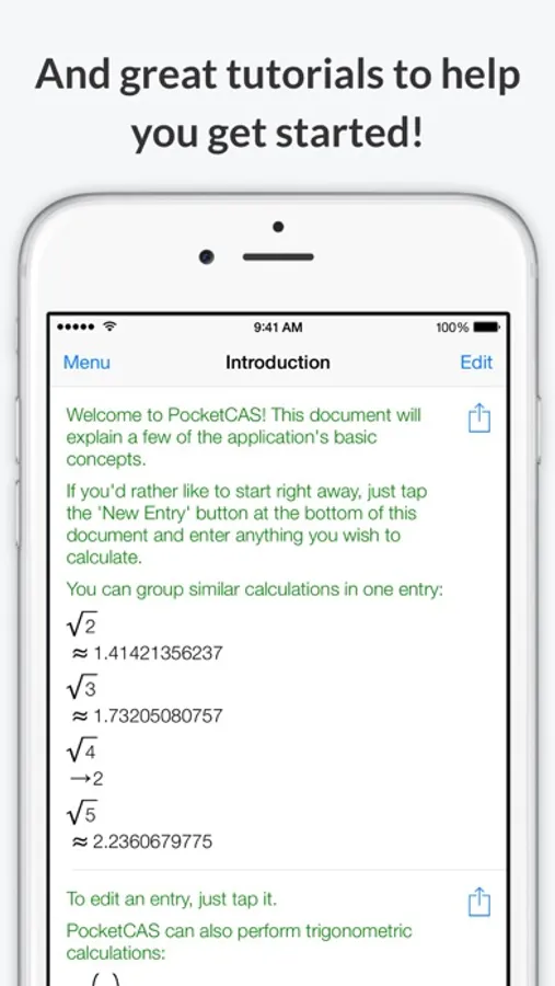 - Help: All functions are explained in the built-in reference. If you're stuck, there's plenty of tutorials as well as a manual (https://pocketcas.com/manual) to get you going. And you can always contact our support (https://pocketcas.com/support) for help!