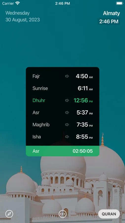 2. Adhan. Set up notifications about prayer by Adhan with heart-soothing voices of muezzins or other sounds (nature, system sound)