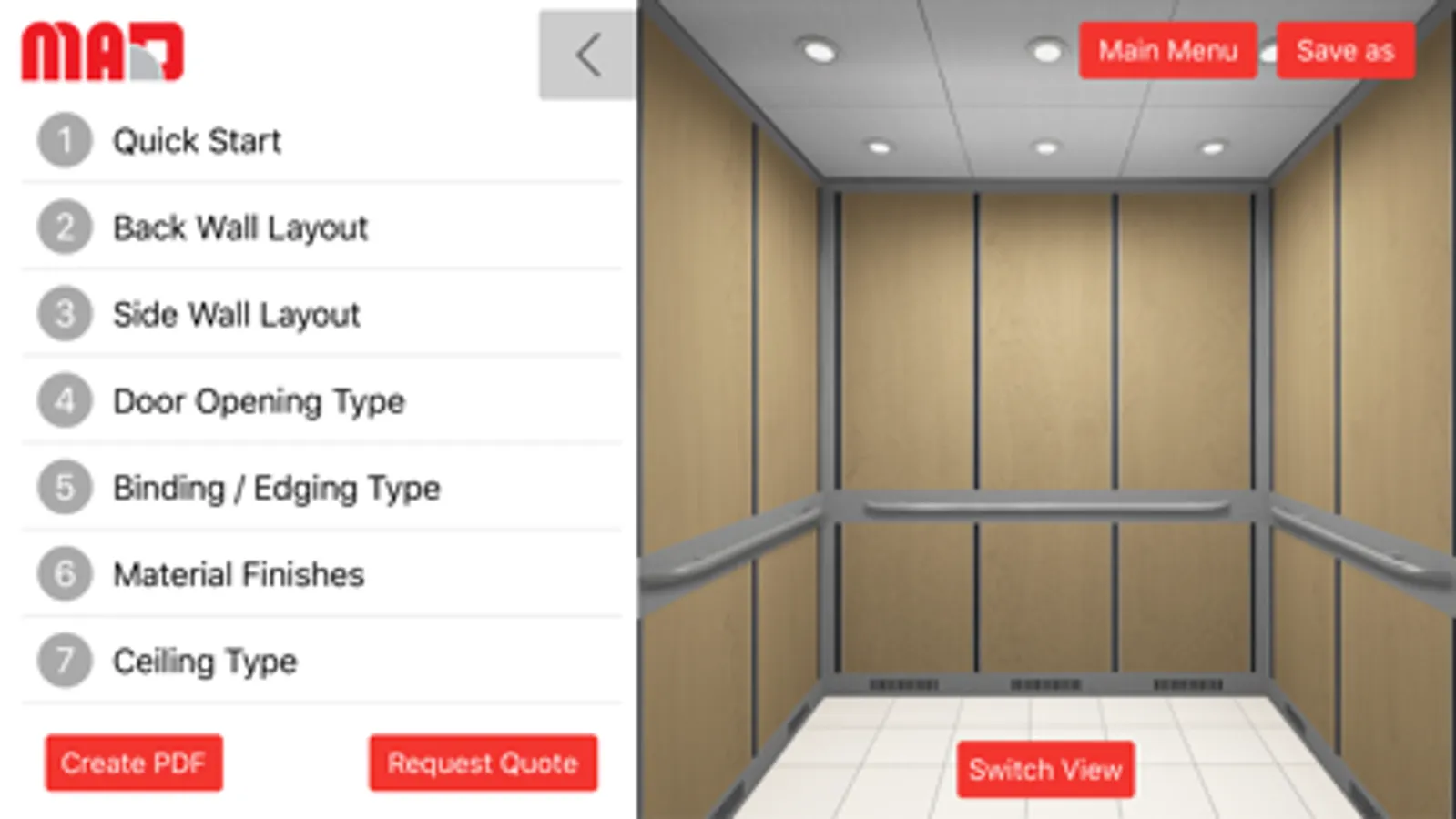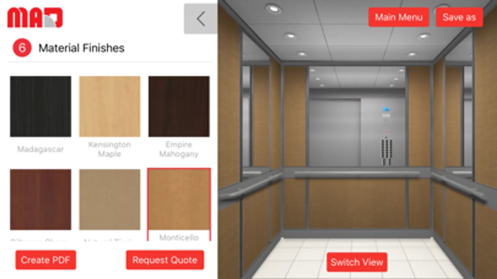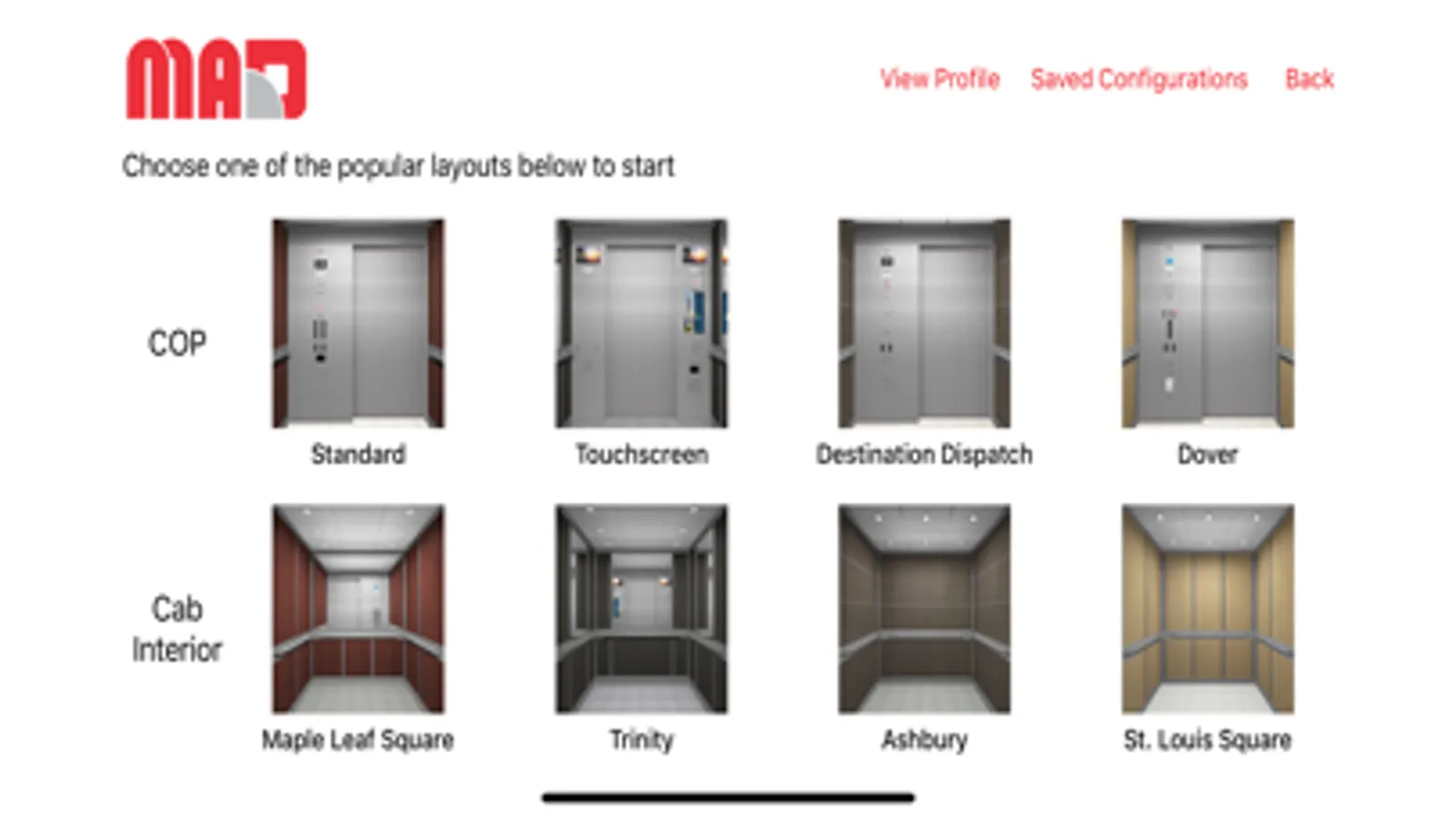 MAD Configurator app is designed for marketing purposes to eliminate the needs to carry bulky sample cases to client meetings. Using a tablet or smartphone, the user can interactively make selections to work with their client to make final selections on design, shape, finish, color and style without physical samples.