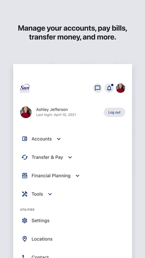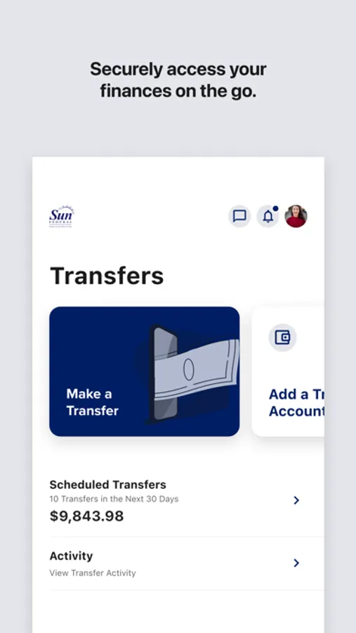 "Download Sun Federal CU’s mobile banking app for convenient and secure 24/7 access to your account balances and more! It’s quick, safe and easy to use. Just use your Sun Federal online banking username and password to login.