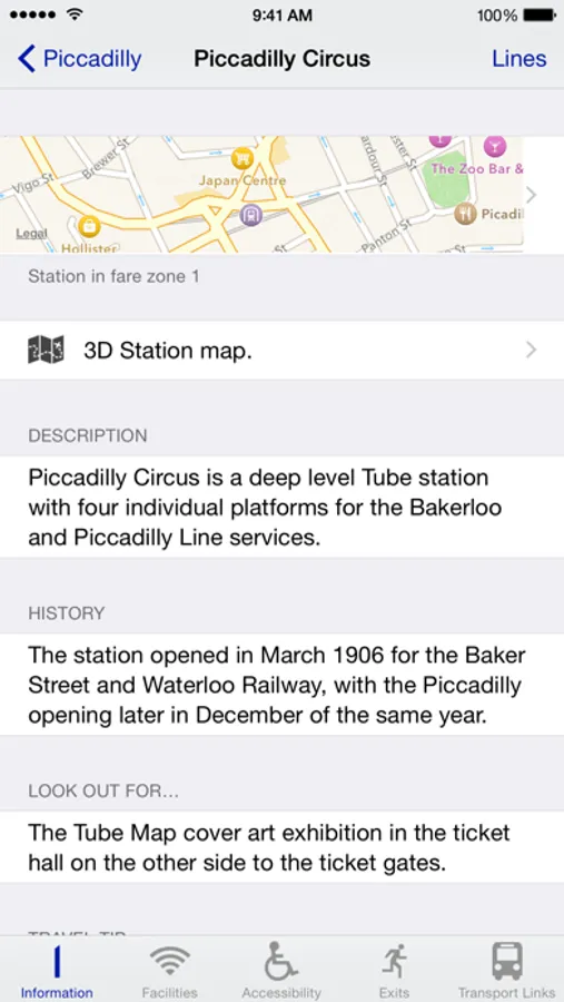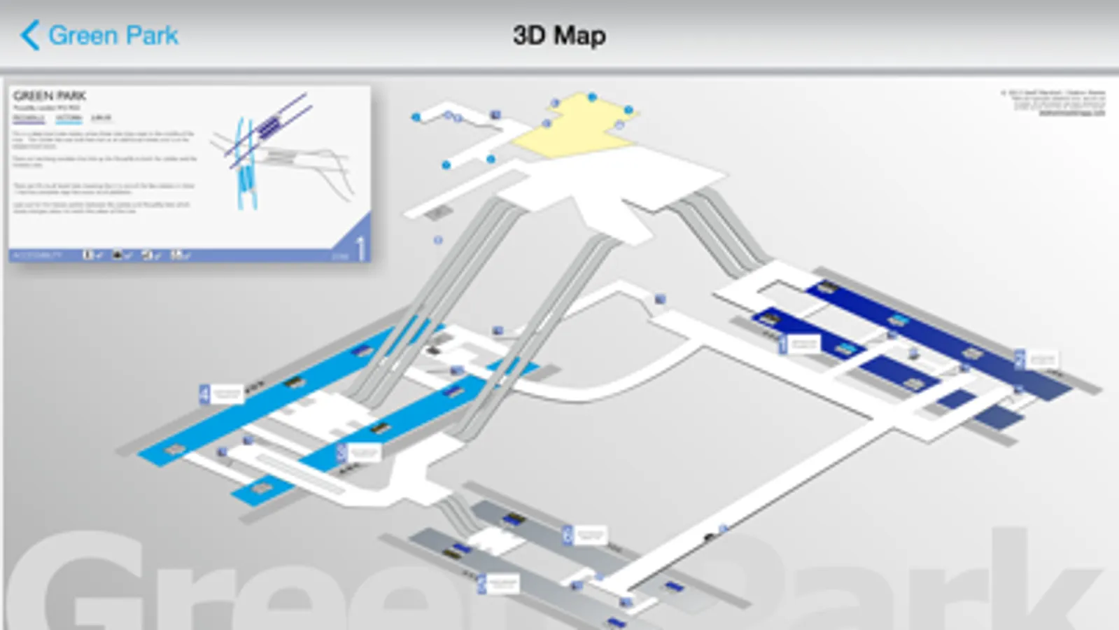 • 3D Maps and Exit Maps at selected stations (ALL 270 Tube stations covered in 3D!) - visualise a station before you travel there!