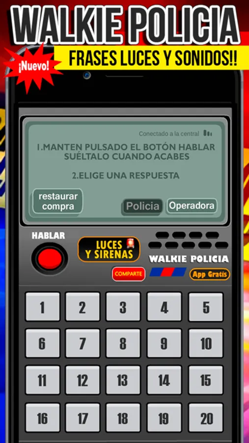 Con el "Walkie Policia" podrás avisar a tus compañeros de patrulla en cualquier momento para que te saquen de un apuro y de paso echarte unas risas con tus amigos. También podrás usarlo para ahuyentar a gente con malas intenciones...