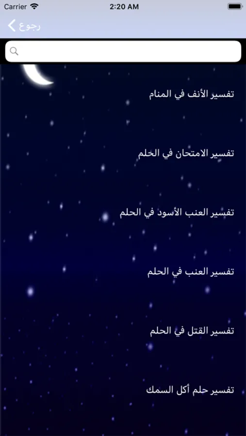 يحتوي البرنامج على تصتيف الأحلام حسب الحروف الأبجدية بالإضافة إلى تفسير الرؤيا والأحلام