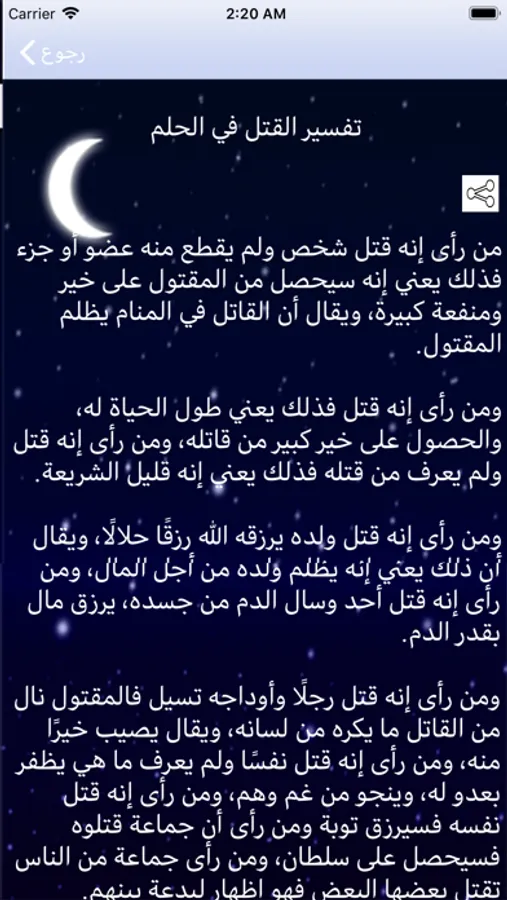 - يمكنك مشاركة التفسيرات عبر الفيسبوك والواتس اب او نسخها إلى جهازك