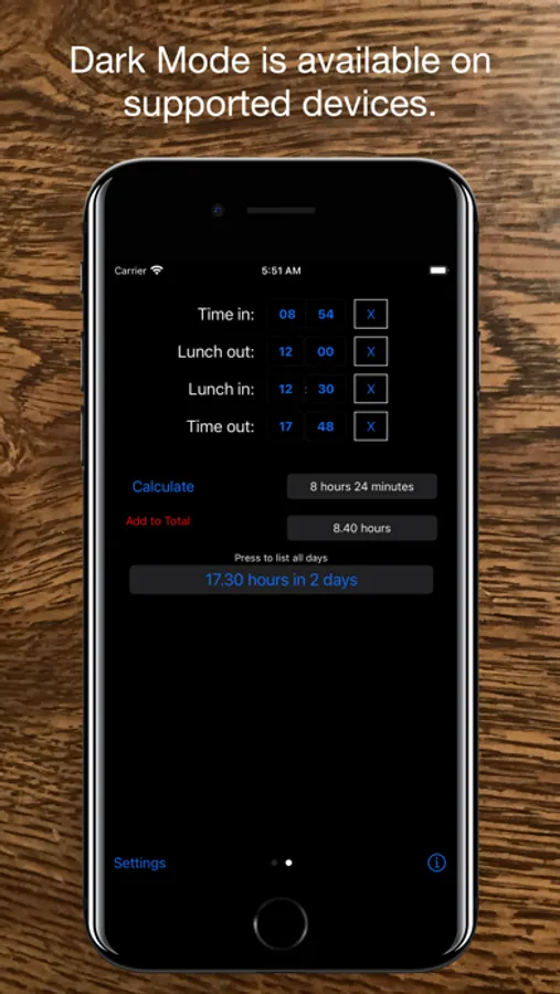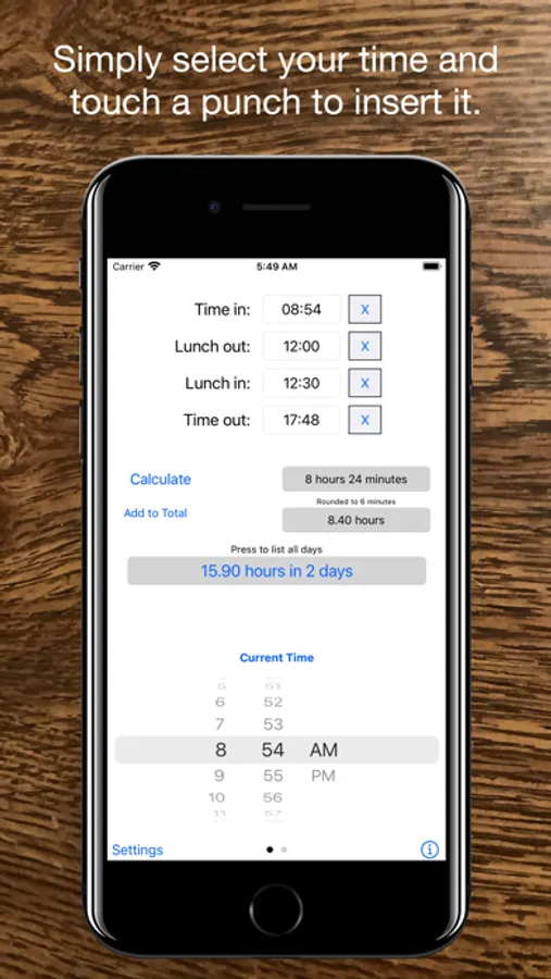 Use this app to quickly calculate how many hours you worked in a day using a standard time card.