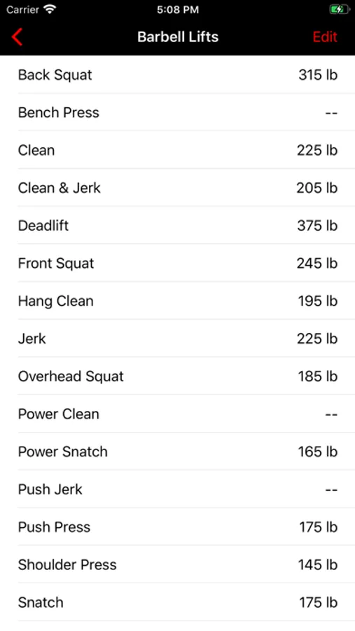 + Barbell lifts can be filtered down to your best effort on x1, x3, x5, x10 & x20 rep schemes